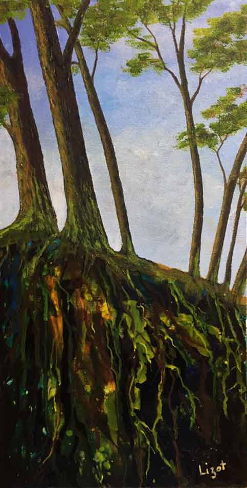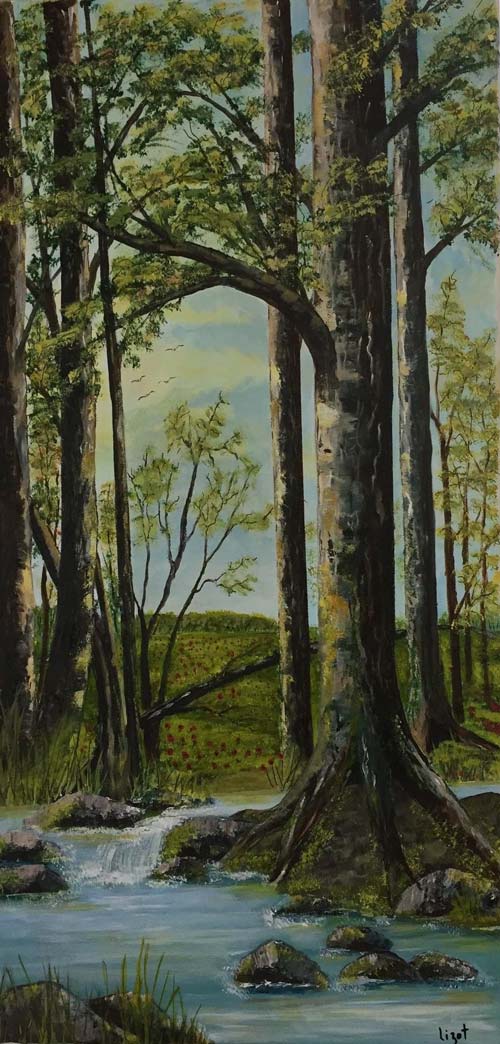 J’aime peindre et utiliser différents médiums, dont l’aquarelle, l’huile, l’acrylique, le faux vitrail sur toile, etc.