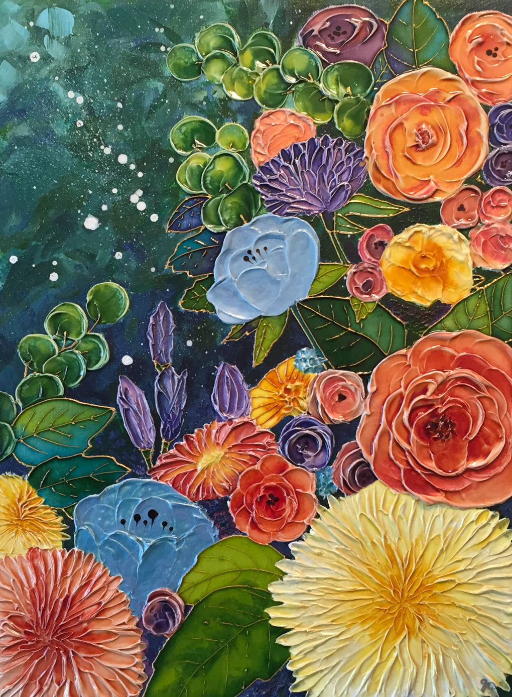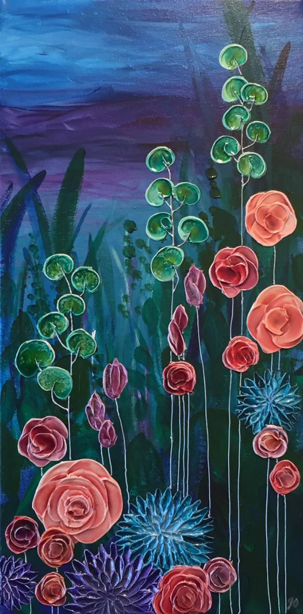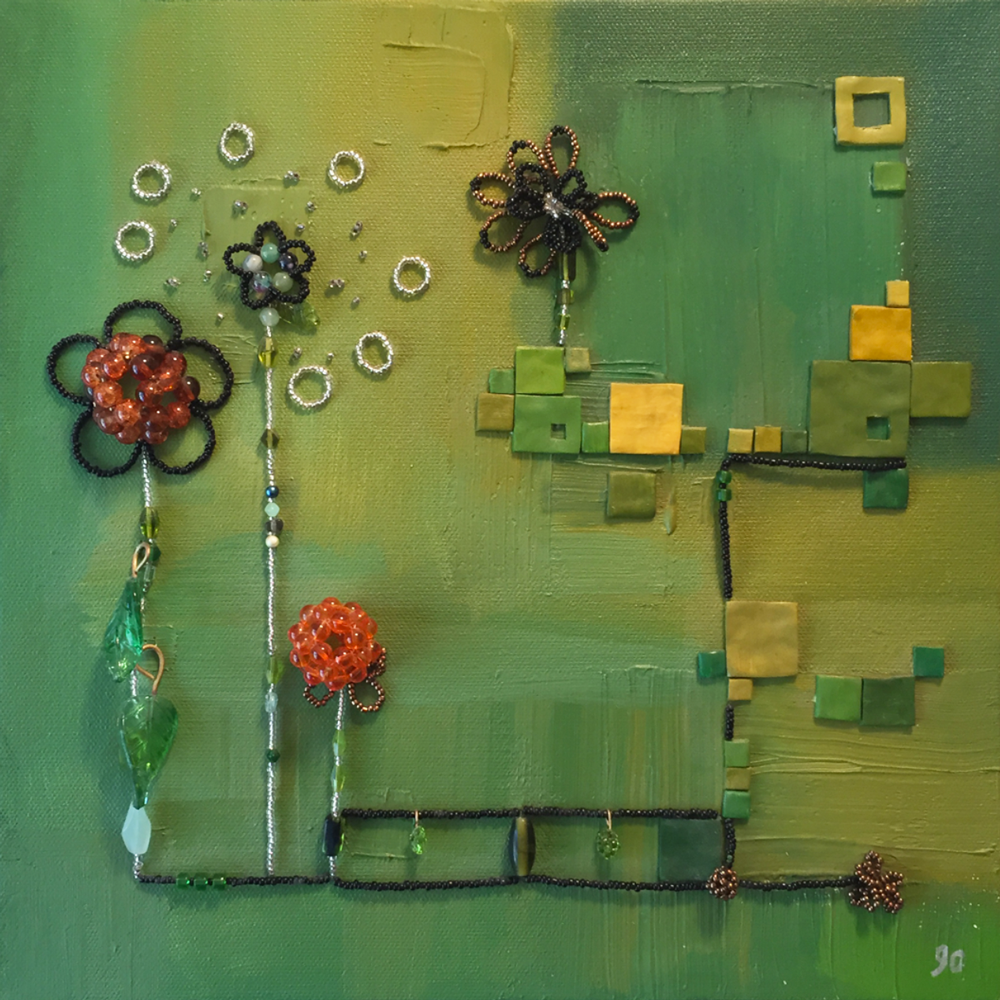 Ça fait maintenant 16 ans que je suis dans le domaine des arts graphiques, j’avais mis mes pinceaux de côté pendant plusieurs années pour les ressortir il y a un peu plus d’un an. Depuis tout ce temps, je traînais mes bacs d’arts plastiques. Je suis entrepreneure depuis maintenant 10 ans et l’appel de toucher la matière et de faire des arts a pris de plus en plus de place dans ma vie. C’est peut-être mes 40 ans qui vient d’arriver, mais je suis dans un tournant de ma vie qui m’amène à revenir à la source de ma créativité et de m’ouvrir à un nouveau chemin de vie.